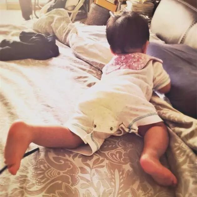 3. 5月9日,姚晨微博晒出女儿小茉莉的萌照,并附文:“六个月的小茉莉花,长成了一株多肉植物。”照片中,姚晨女儿小茉莉趴在床上肉嘟嘟超萌。