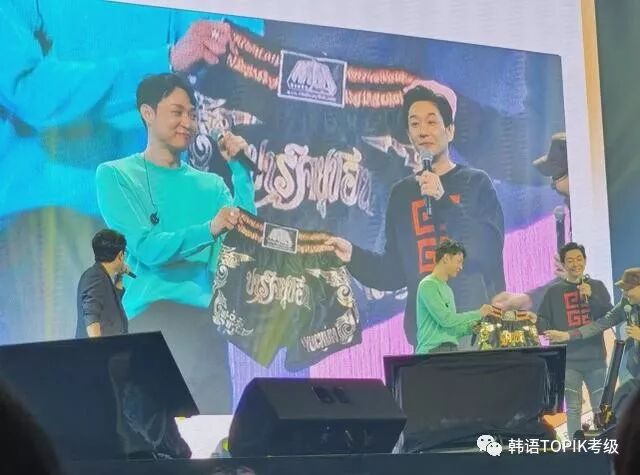 在现场,朴有天还和泰国歌手一起演唱了泰国歌曲,原唱送给朴有天一条拳击短裤,不知用意几何。