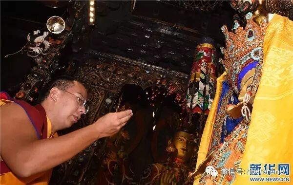 7月27日,班禅朝拜拉萨大昭寺释迦牟尼佛像。新华社记者 觉果 摄
