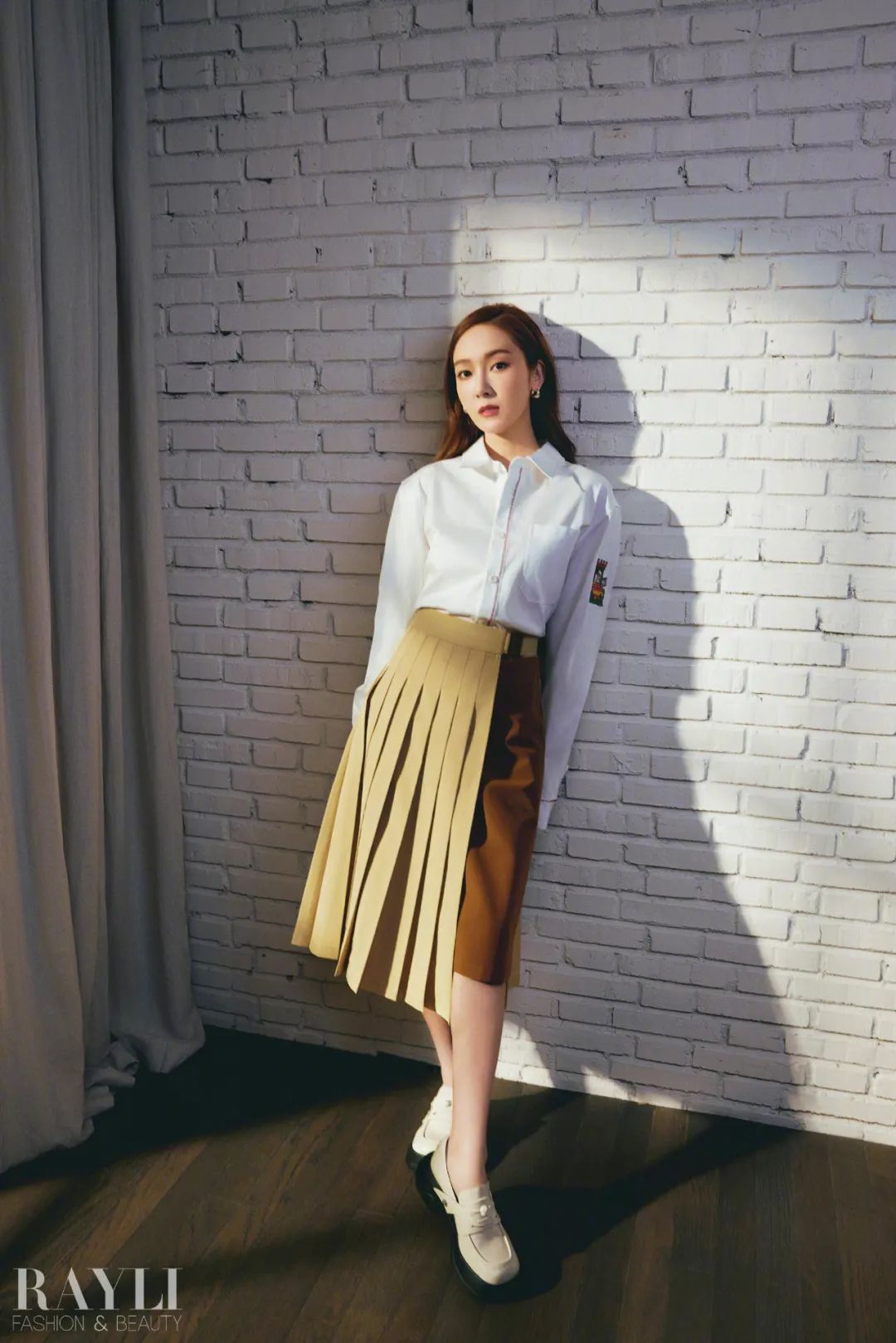 白衬衫、半身裙/均为KOLON SPORT 可隆 × GARCON BY GARCON新春灵感系列。