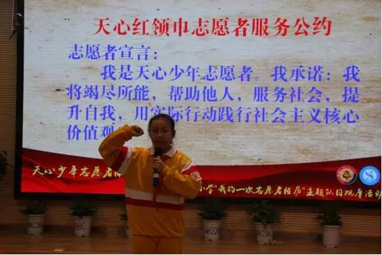 天心少先志愿者服务队的成立,能让全体队员更好的的弘扬志愿精神,为队员的搭建更广阔的成长平台。更使得“奉献、友爱、互助、进步”的志愿者精神深深的扎在了每个与会者的心中,让“奉献、友爱、互助、进步”的种子播散在每一个角落。