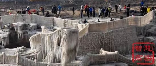 近日,随着气温持续下降,山西吉县黄河壶口瀑布溅水成冰,层层叠叠的冰挂悬挂在瀑布两岸的岩石和护栏上,吸引了众多游客和摄影爱好者。