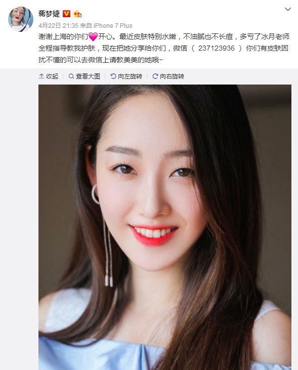 有个点就是蒋梦婕长得还真是很漂亮哇,皮肤白皙水嫩,细腻冻龄,难怪这么多人喜欢她,而她是这样说的呢~