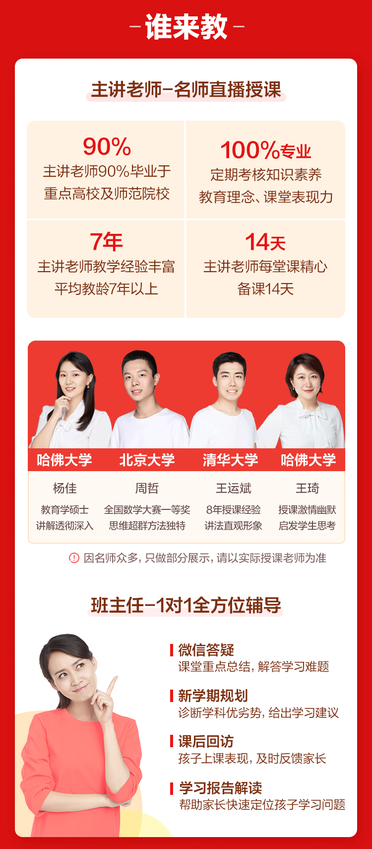 清华、北大、哈佛、哥大等名校毕业老师,平均7年以上教龄