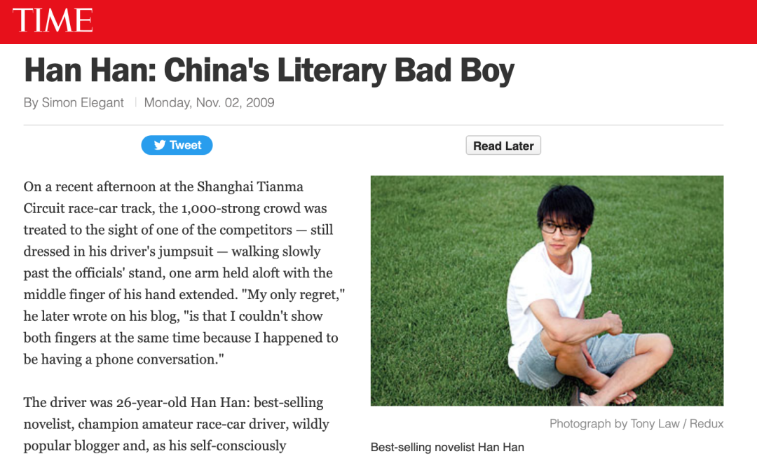 他是上海郊区亭林镇走出来的“天才少年”,叛逆、高调,谁都不服。17岁成名,退学出书;18岁上央视,舌战群儒;27岁登上《时代》周刊,被称为“中国文坛坏小子”。从写作到赛车再到电影导演,他无论做什么都能备受瞩目,有所成绩。