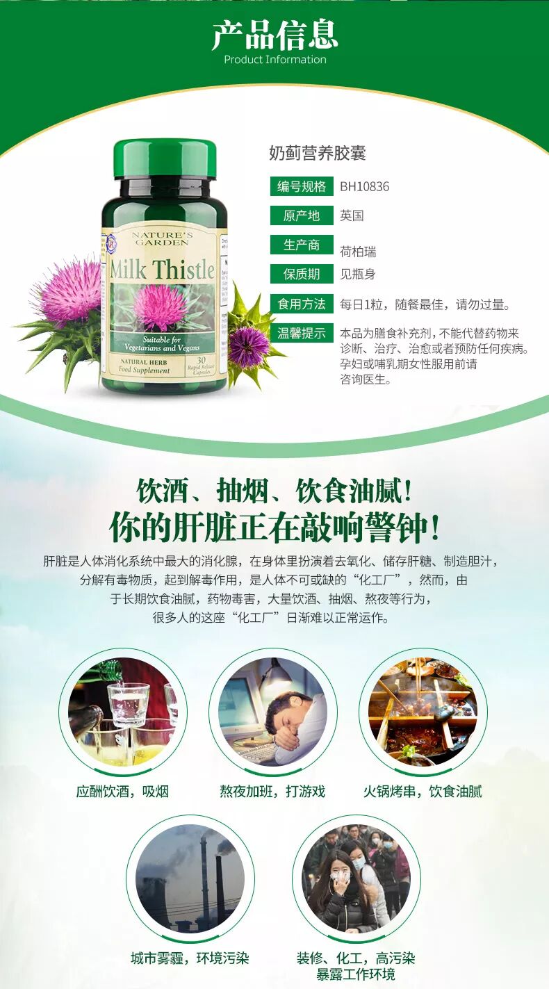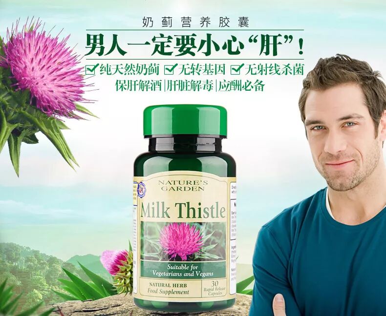 Milk Thistle又名乳蓟(洋白蓟、牛奶蓟),他是由小飞雉的种子中提炼出来,全叶可食无毒。原产于地中海,今已遍布全球。乳蓟果里含有一种叫做水飞蓟素(Silymarin)的活性成分,它是乳蓟里的一种可以保护肝脏的化合物。水飞蓟一直是专门用作肝胆疾病的天然植物药。水飞蓟素能修复被酒精和其他的有毒物质损害的肝脏细胞,同时保护肝细胞不被这些物质所损坏。