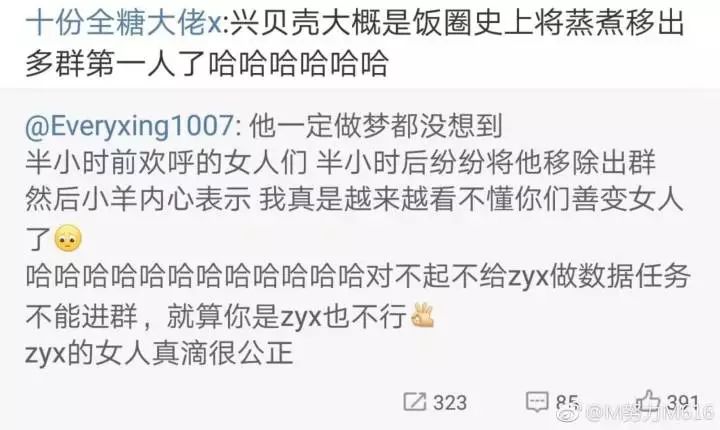更让人服气的操作是,XBack在短暂的狂欢过后,高度一致地将自家爱豆张艺兴踢出了群聊!