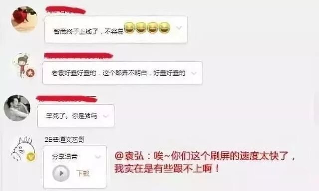 那时候才刚开始有群聊功能,赶时髦的袁弘就和粉丝们玩起来,但因为他发消息的速度太慢以及不会发语音被粉丝们嫌弃。