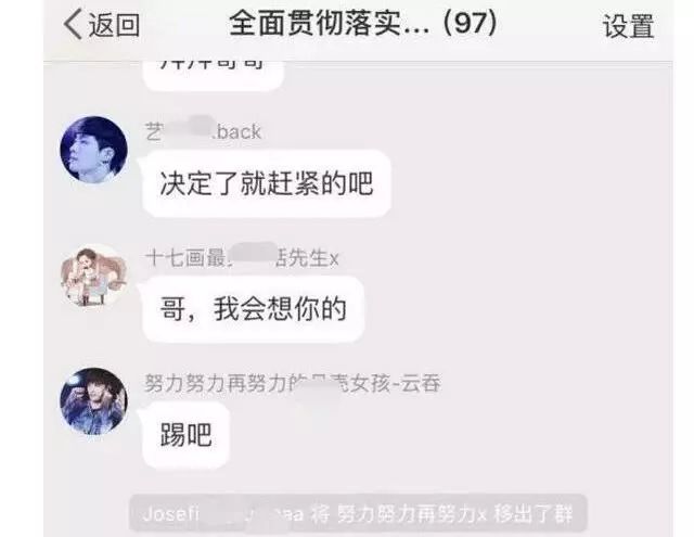 有的粉丝认为他不会退群,踢了他就可以一别两宽;有的粉丝是怕他暴露自己的地理位置,为了他的安全将他踢出群;还有的粉丝坚决服从群规,即使是张艺兴,不做任务也不能在群里。