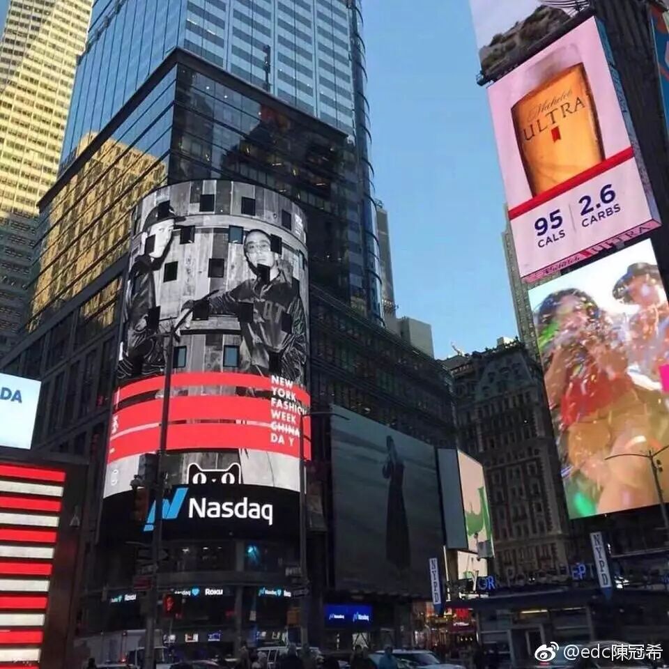 纽约时装周“天猫中国日”纳斯达克广告 | 图片来源: 微博@edc陳冠希