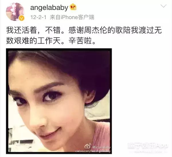 2014年,周杰伦大婚,baby在微博衷心的送出了祝福,恭喜你我的青春,如今你娶得良人我也找到了爱我的人。