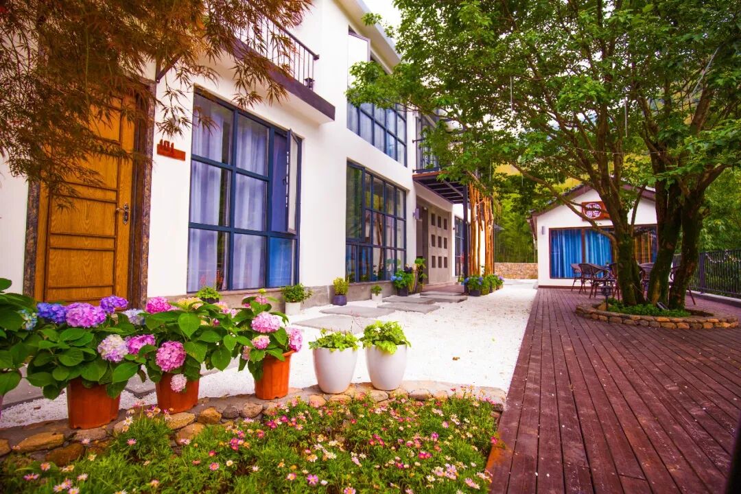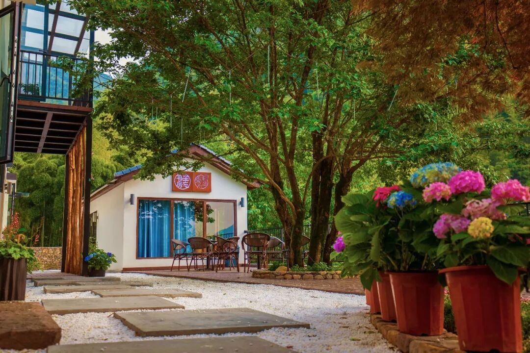 沿着窄窄的石阶拾级而上,姹紫嫣红的绣球花、白石子铺成的安逸小道,庭院被拾掇得生机勃勃。