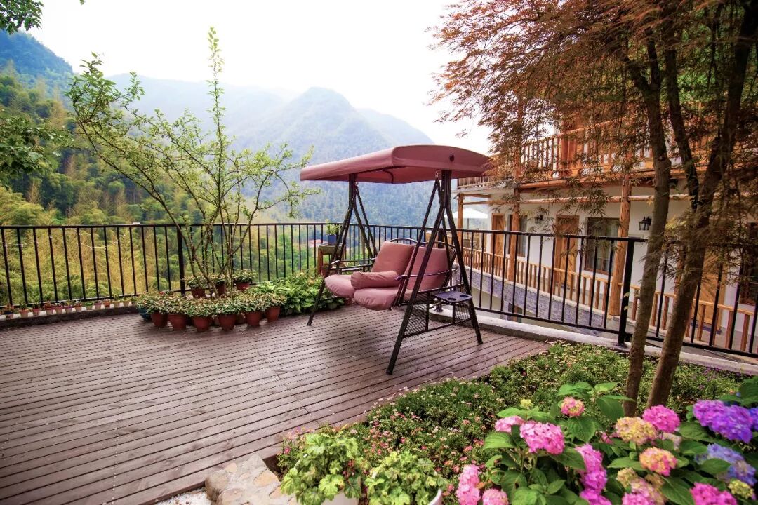虽被置于庭院一角,这副皮粉色的摇椅仍然牵动了我的少女心。