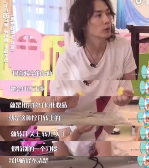 我们小Lucky还是位“美妆博主”呢,睡觉都要抓着美妆蛋蛋,而且还喜欢玩戚薇的化妆品,口红、指甲油什么的,真的还从小培养呢。