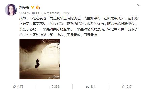 小编也翻了翻她不怎么更新的微博,发现她不骄不躁,一直按照自己的频率生活工作。