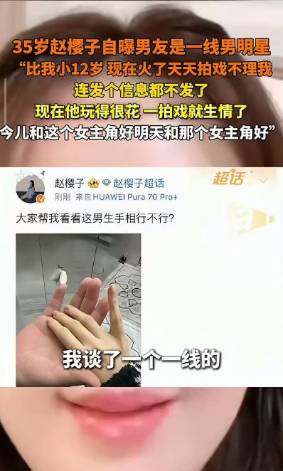 赵樱子33岁自曝男友比自己小12岁:一线男星火了不理人?悬念升级 网友:真情or剧本?