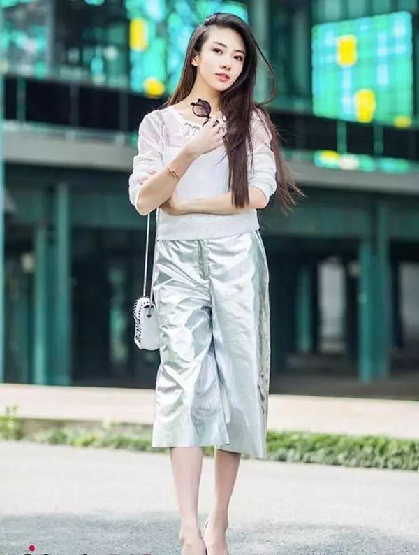 白色上衣,配上七会亮片裤,视觉上清爽。