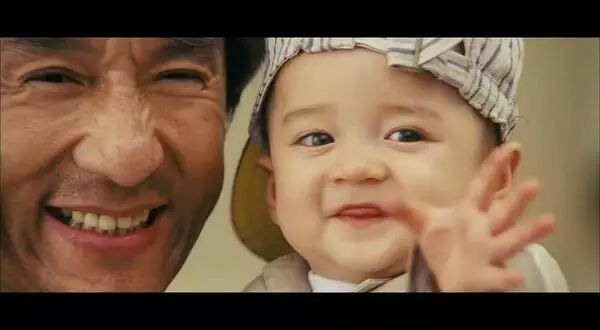 在拍戏的过程中,成龙也跟这个精灵古怪的小宝贝产生了感情。