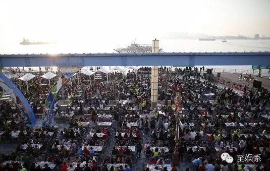 主办方光在文化街海鸥厅一带布置场地,就用上了550张八人用白色桌子,以及4500个灰色椅子,桌椅的整个长度就达到了300米。