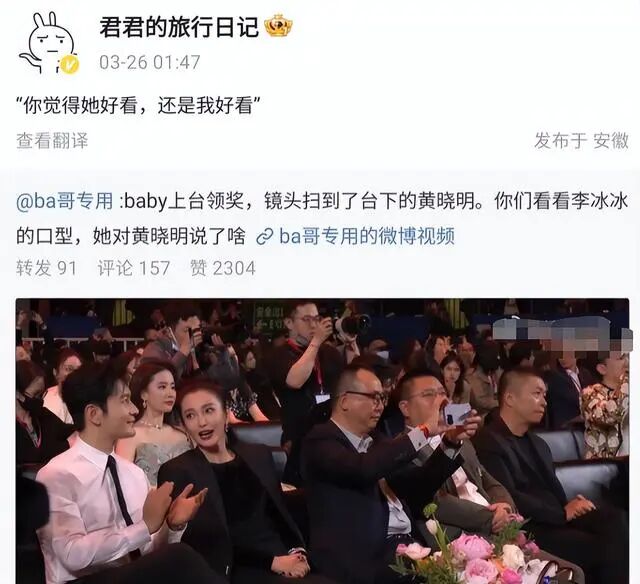 此后,李冰冰再没有传出过感情的消息,直到她在微博之夜上引起轰动。