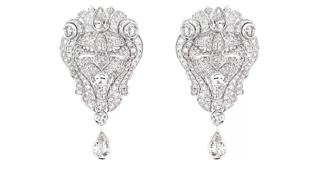 CHANEL Lion Venitien耳环,18K白金镶嵌450颗共重约2.6克拉明亮式切割钻石及4颗共重约1克拉梨形切割钻石,142万新台币……