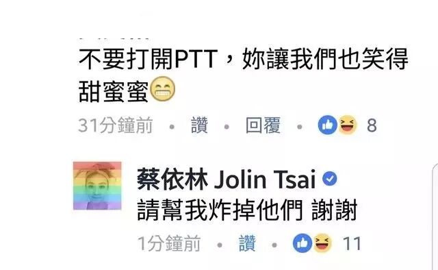 甚至,不断有歌迷提醒她“不要打开PTT,你让我们也笑得甜蜜蜜”,她也大方回应留言说——“请帮我炸掉他们谢谢”⤵️⤵️