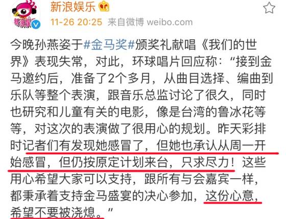 其实,孙燕姿早在金马表演前3个月就开始准备演出了。但是,彩排的时候,媒体发现孙燕姿感冒了……⤵️⤵️