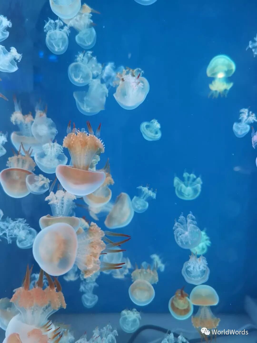 看水母在水里蹦跶蹦跶真的好好玩 好漂亮哈,来,百度一下,水母可是比恐龙更加久远的存在哦,真好