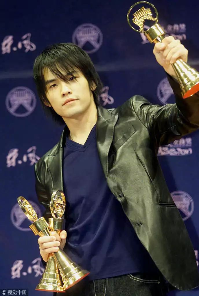2002年5月4日,第十三届金曲奖颁奖典礼,周杰伦勇夺三项大奖。图片来自视觉中国