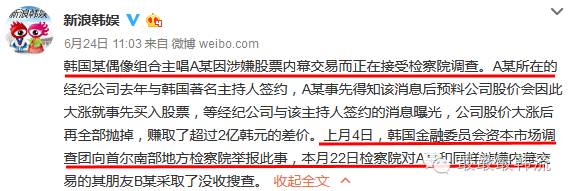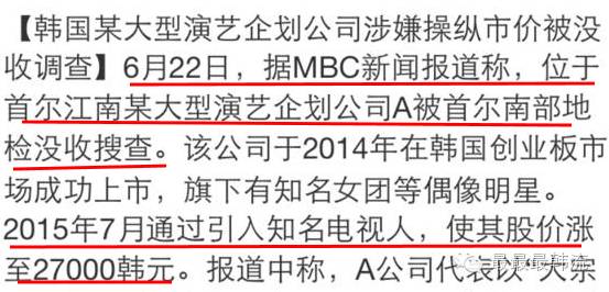 前几天韩媒爆出韩国某娱乐公司涉嫌操纵股市被调查↓