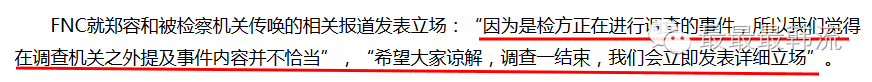 对此,FNC的态度是:现在不方便说,等调查结束我们会详细跟大家说明白↓