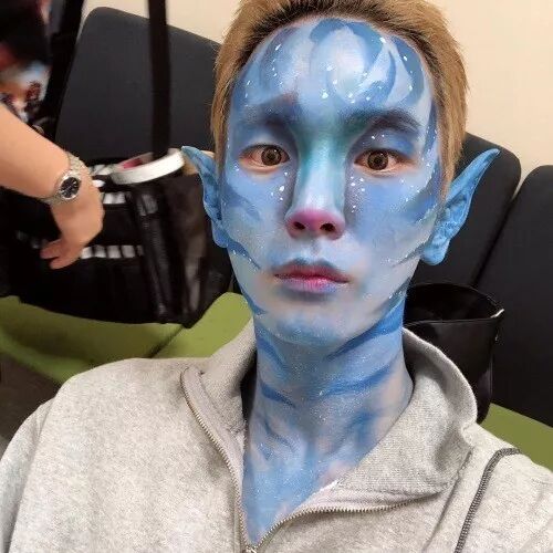 据推测照片中的Key装扮成电影《阿凡达》中的人物。完美消化了装扮,显示出了帅气的美貌。