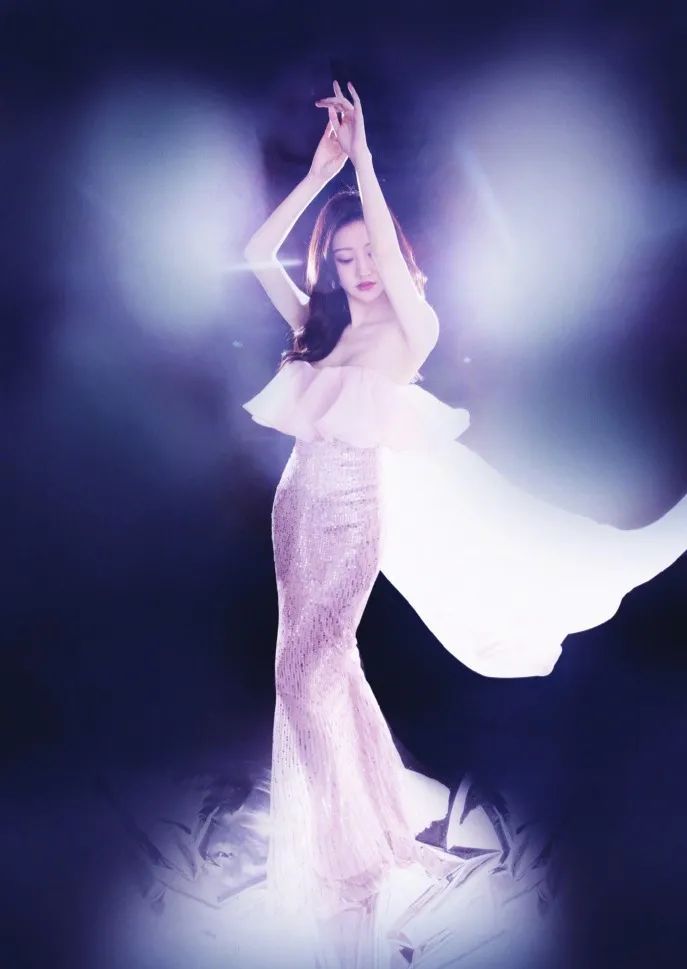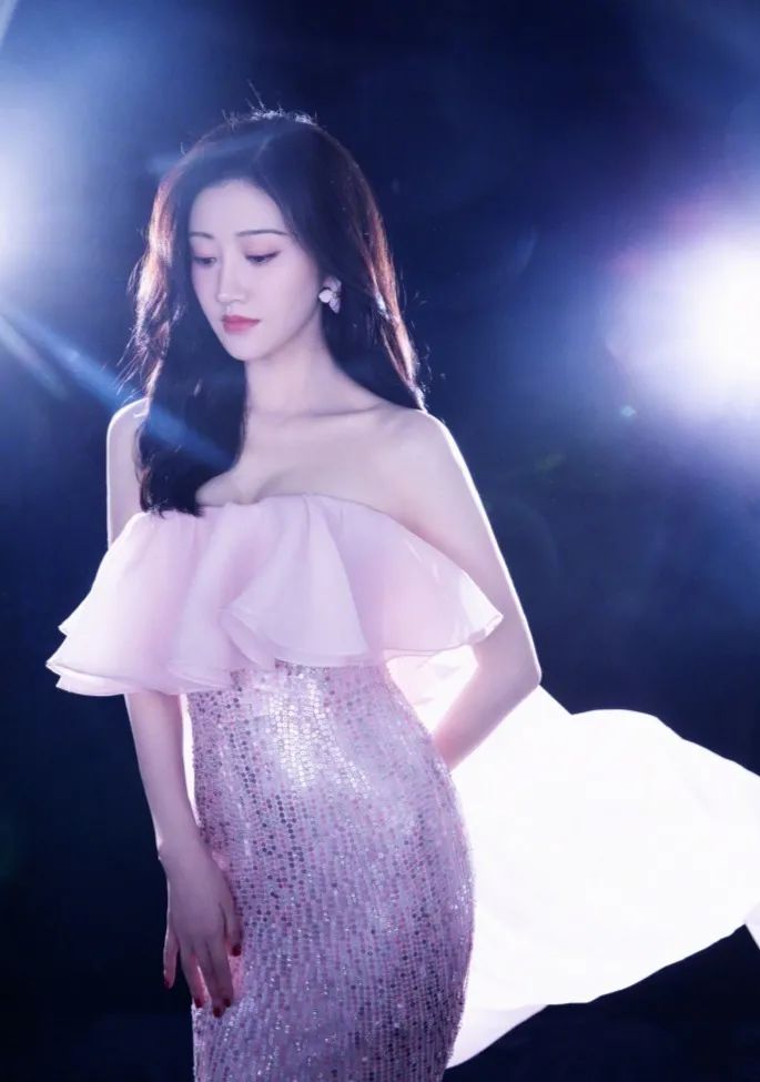 9月9日,景甜分享了一组美图。照片中,她身穿粉色飘纱修身亮片鱼尾裙,好似仙女,留大波浪长发,增添优雅气质。