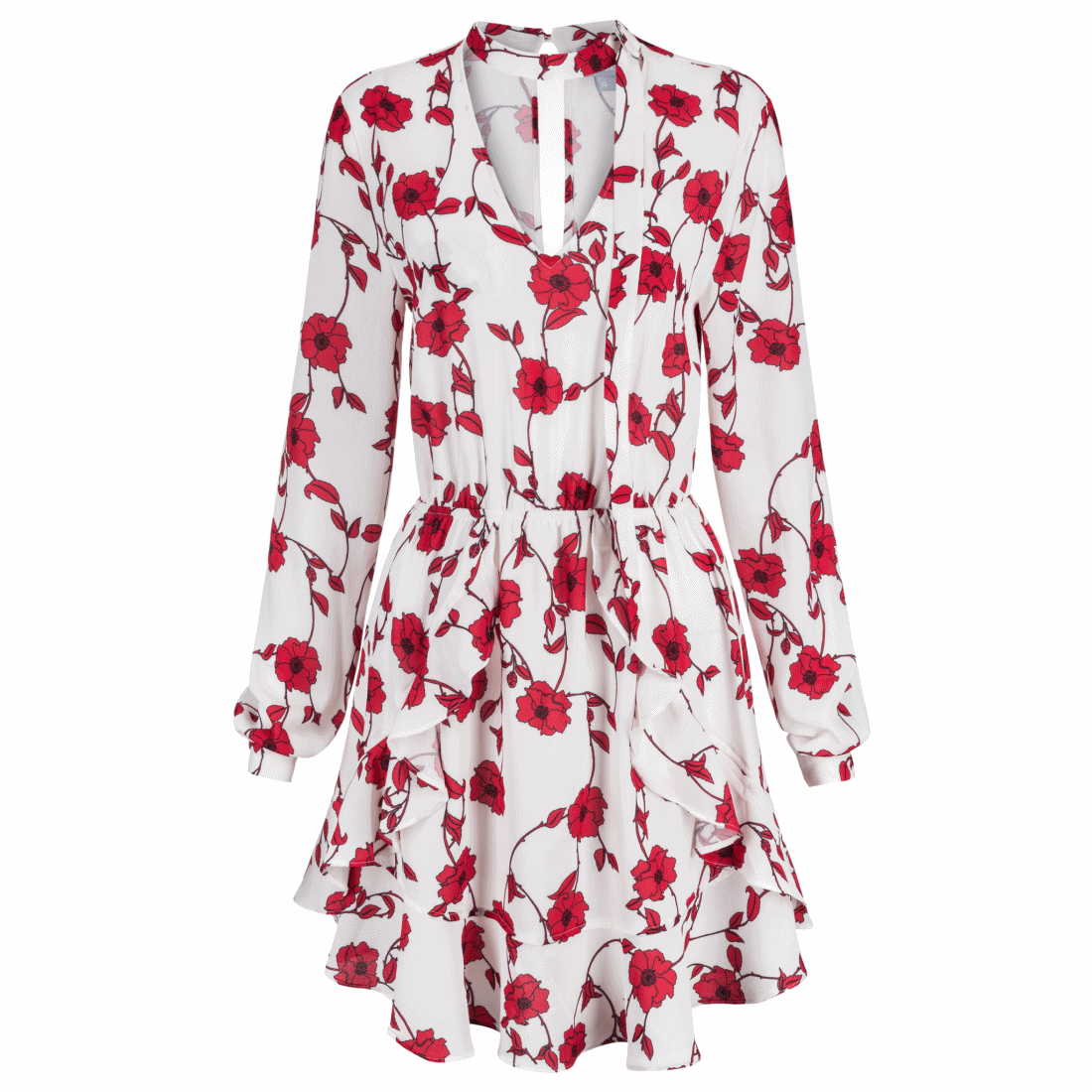 以及穿着联名系列白色雪纺藤蔓花连衣裙出席发布会的叶一茜。