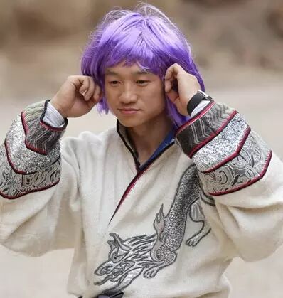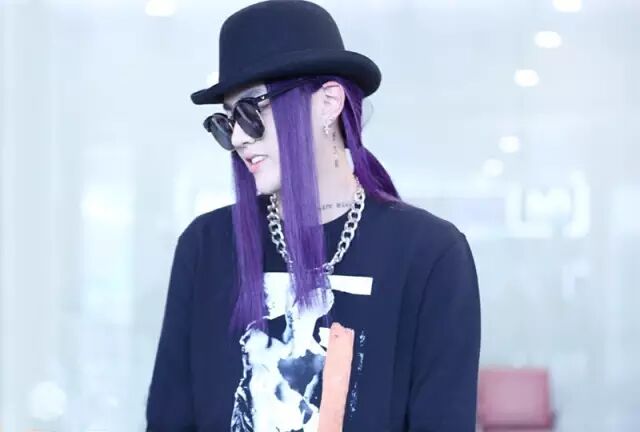 杨威的紫色假发造型,这样的发色超非主流的,一般人绝对驾驭不了。