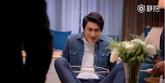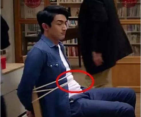 坐在凳子上被五花大绑,肚子上的肉跟米其林轮胎似的。