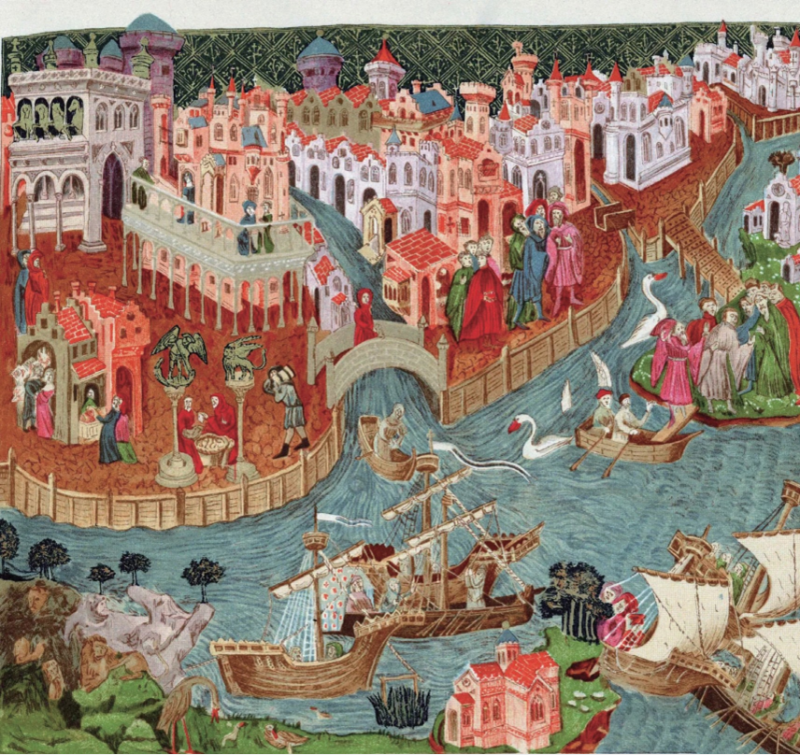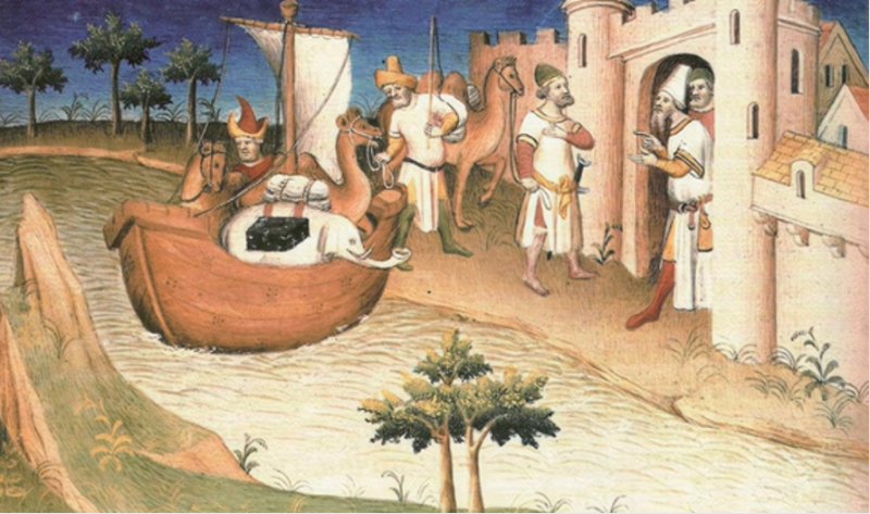 1271年马可·波罗从威尼斯起航。来自泥金手稿的细节,牛津大学博德利图书馆收藏。《北京三万里:重大时刻来华的那些人,那些事》内页插图。