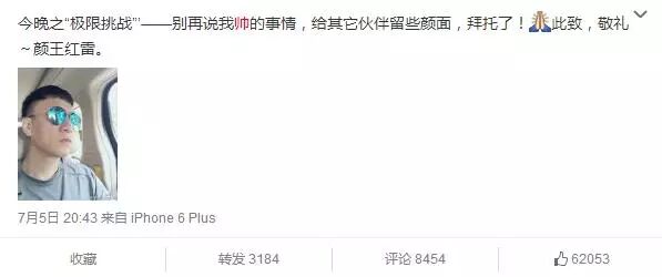 而且红雷叔对这点可是异常自信,而且非常善于给他人洗脑!在他一遍遍的郑重声明中,大家都已经接受了他“颜王”的身份。