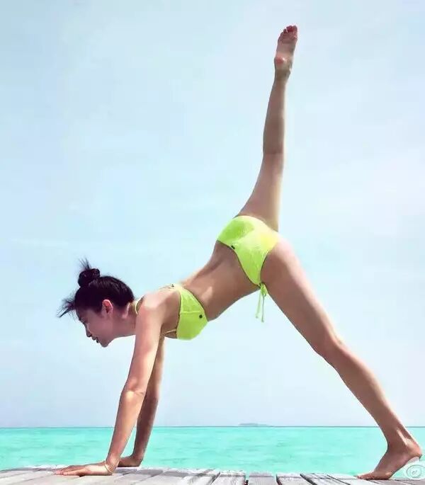 李冰冰曾在生日的时候在微博上晒出了一组健身瑜伽照片。