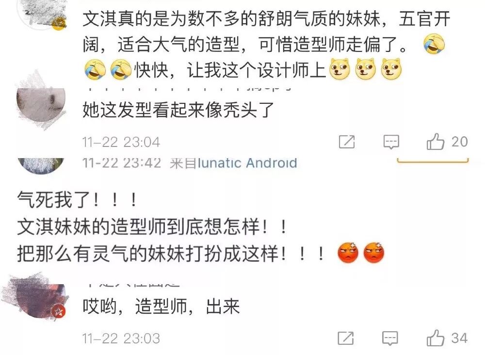 霸占槽点最多的当属文淇了头发紧贴头皮,显得发际线异常高!