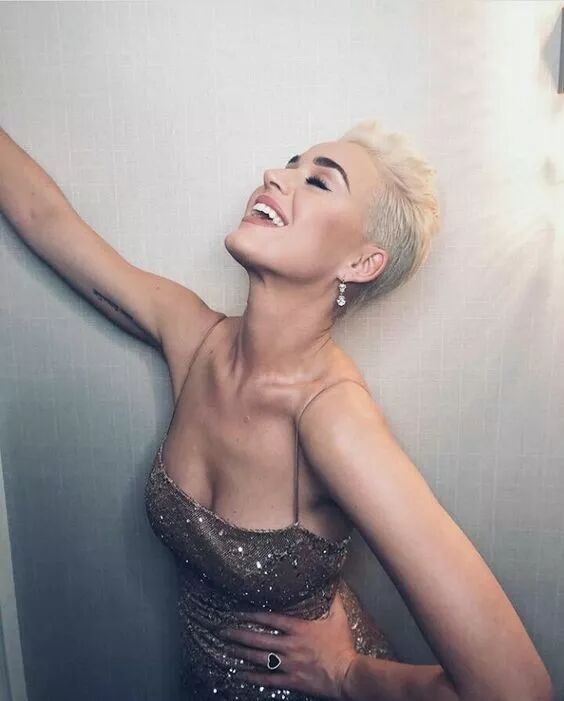 水果姐katy perry也剪了,爱笑和爱涂口红的水果姐,超短发介于性感和帅气之间。