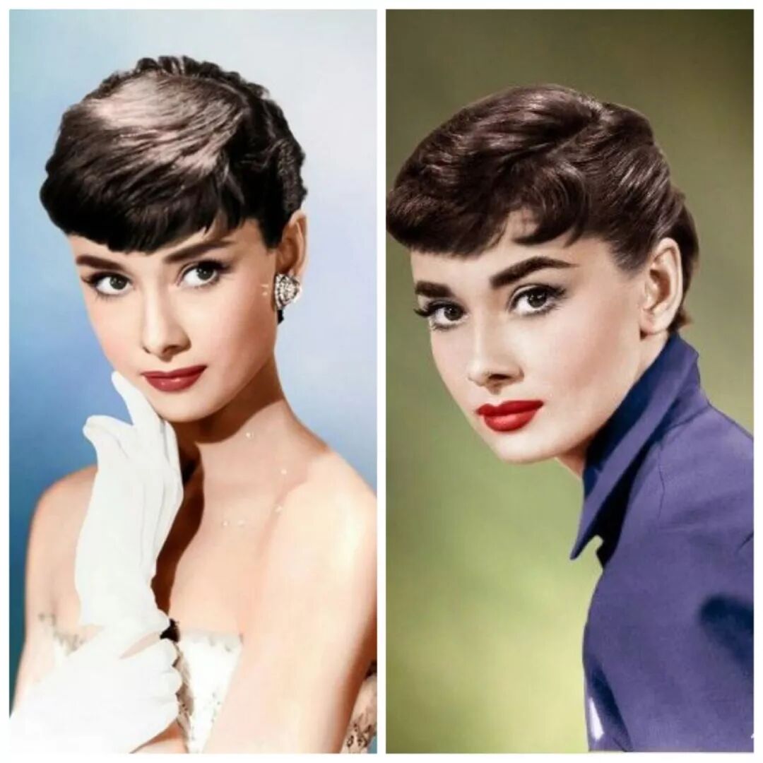 奥黛丽赫本《罗马假日》俏皮的黑短发。在年前就留下了经典的油头发型,厚刘海更突显了她精致的洋娃娃脸。