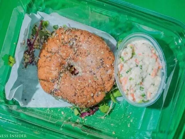 ▲一个无麸质贝果(贝果是一种中间有洞的面包圈,中文另一种翻译叫百吉饼),成分包括亚麻籽,鼠尾草,大麻籽,罂粟籽(也不知道这玩意在国内是不是犯法),据说要烤过才能吃,而且硬的要死。