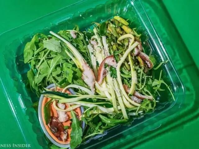 为了保证短期最好的塑身效果,很多维秘模特会选择戒断碳水化合物,这份沙拉也是,完全不含任何谷物(也就是俗称的主食),只有菜(还是生的)。
