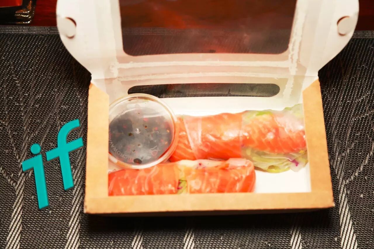 ▲成分包含:低盐烟熏三文鱼,生菜,薄荷叶,越南式生春卷皮(原料为大米)。