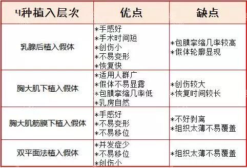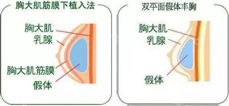 胸大肌筋膜下植入假体:胸肌筋膜可以给假体提供承托,能防止假体下垂移位,还能够避免胸大肌下及乳腺下植入的一些缺点。