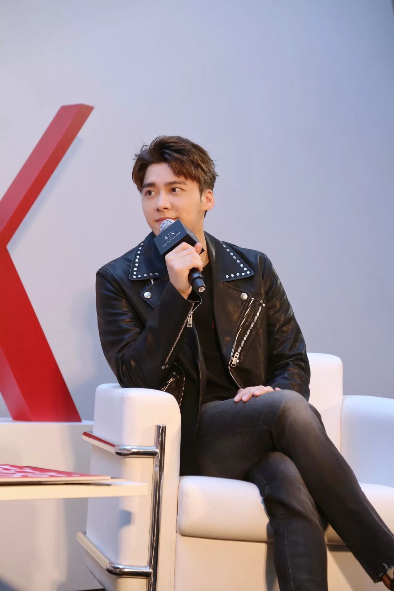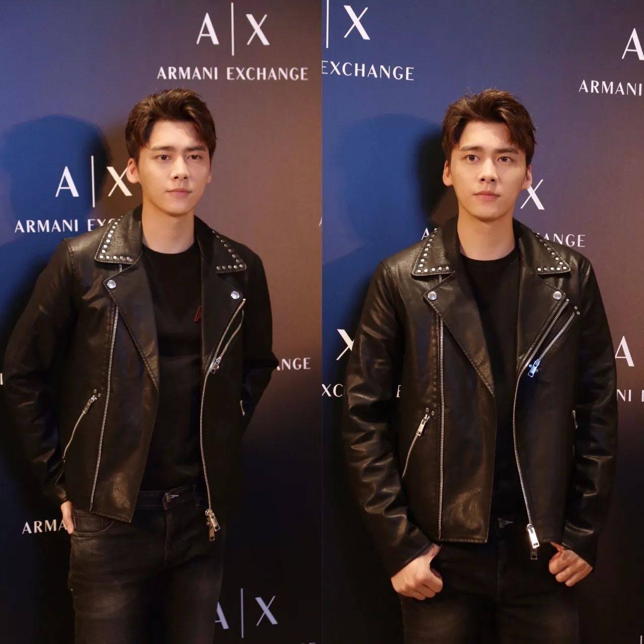 皮衣内搭裤子鞋子均来自ArmaniExchange