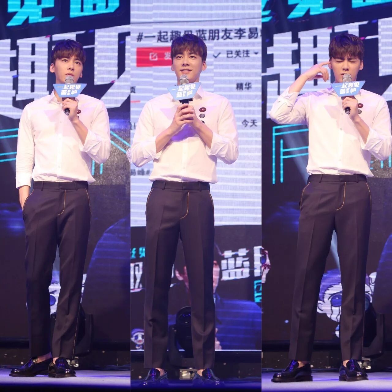 峰哥身着Lanvin白色衬衣搭配黑色长裤亮相