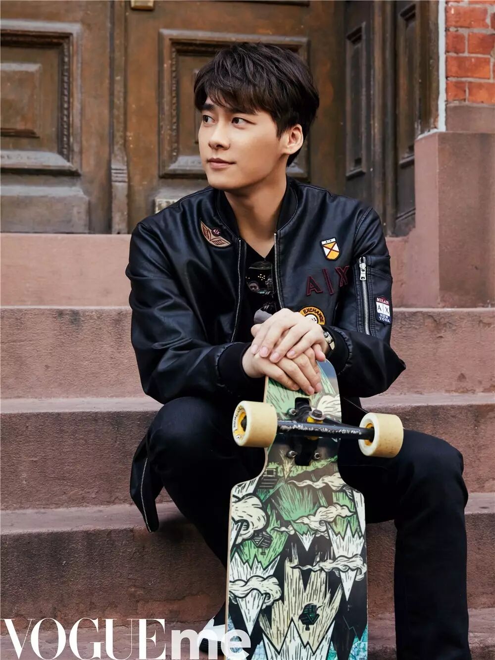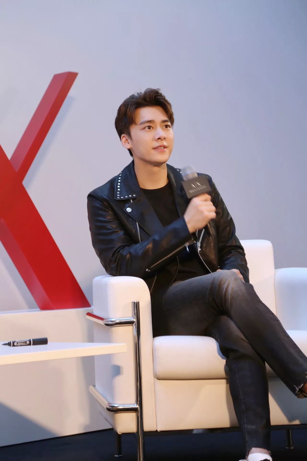 峰哥身穿黑色徽章短款皮衣搭配同色T恤