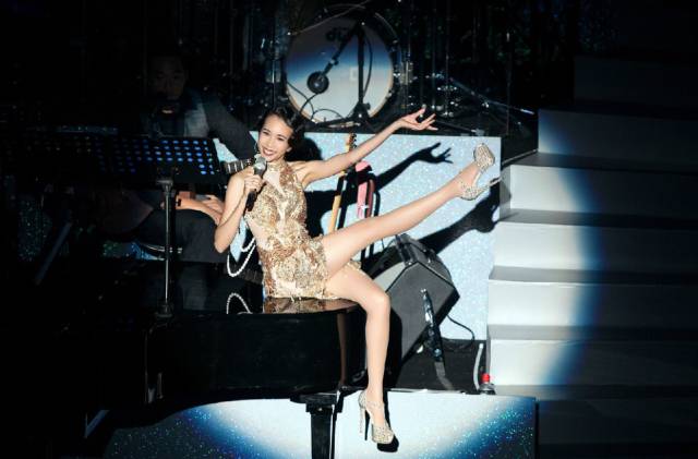 坐在钢琴上,双腿微微一搭,把高跟鞋摘掉,随手轻轻一落,就像一只风情万种的妖精,从骨子散尽妩媚,却又高贵得不忍亵渎。